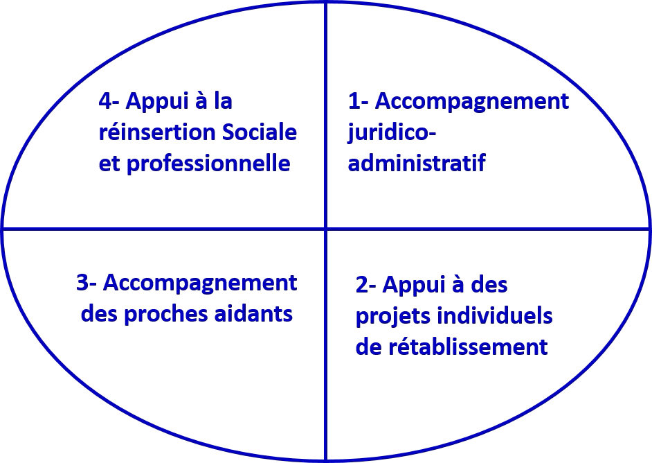 Elle accompagne leur rétablissement psychologique, social et professionnel par :